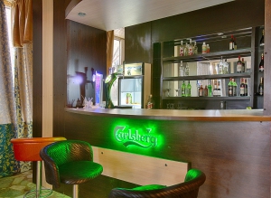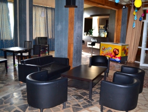 В пансионате гости питаются в столовой, им предлагается комплексное питание полный пансион. Также всегда работает бар с хорошим выбором напитков, имеется финская сауна с купелью (мини-бассейном). Есть бильярдная.