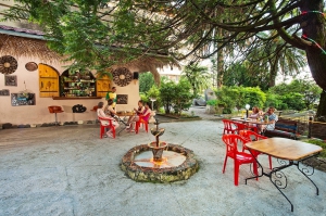 Дом отдыха «Колхида» в Гагре утопает в зелени субтропических растений. Корпуса окружены чудесным Приморским парком, который спускается сверху до самого входа на пляж. Территория парка ухожена и украшена клумбами с цветами, кустарниками, здесь вас ждет множество пальм, агав и многих других красивых южных растений, есть лавочки для отдыха, дорожки для прогулок.